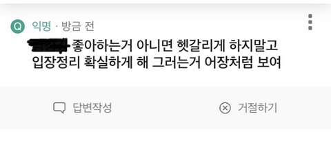 근데 내 에스크에 그 남자애 좋아하는거 아니면 헷갈리게 하지말고 입장정리 확실하게 해 어장처럼 보여 이렇게 달린거야….