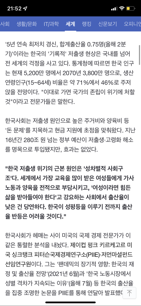 이거 작년에 한국정부에서 피터슨국제경제연구소에다가 저출생 해법 제시해주라고 만든건데 지들입맛에 안맞는 답변 돌아오니 내내 쉬쉬하다가 이제서야 슬슬 공론화되는중ㅋㅋㅋㅋ
