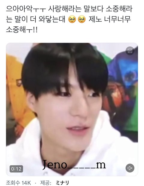짹에 어떤분이 제노가 시즈니한테 소중하다고 말하는거 모아두신거 봤는데 그거보고 이거보니까 눈물 줄줄 ㅠㅠ