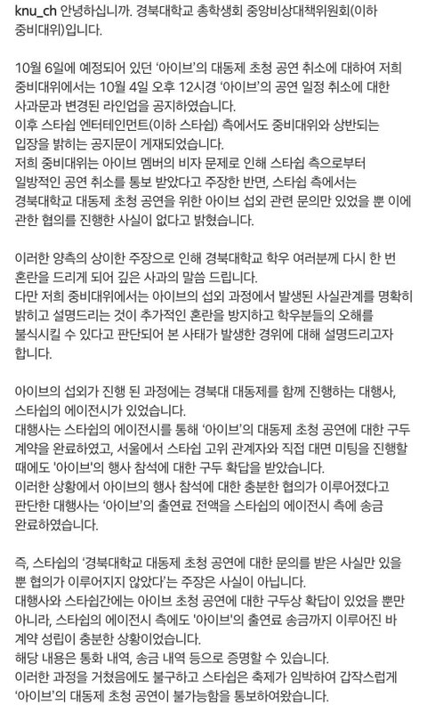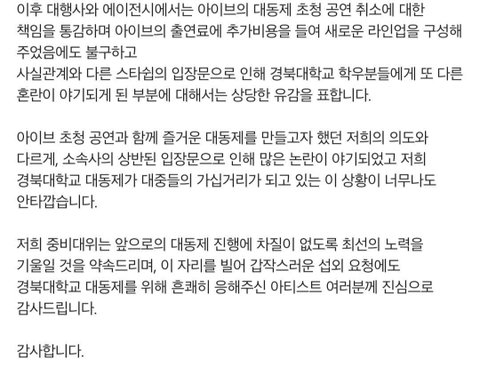 경북대 총학 아이브 관련 입장문 (반전주의)