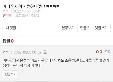 이아줌마 왜 지가 개줌이라 개줌이라고 욕먹은걸 왜 아무상관도 없는글 가서 화풀이임? 진짜 ㅈㄴ 쪽팔려