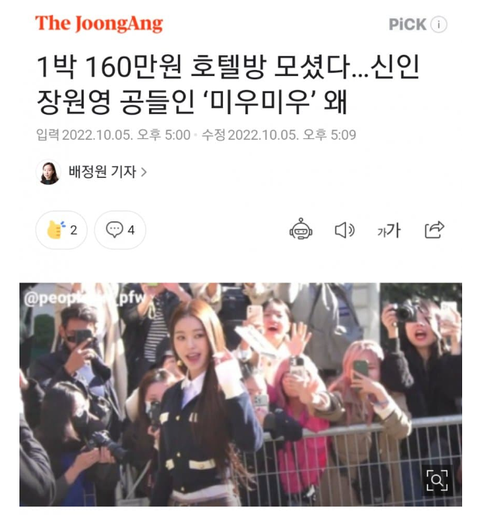 장원영 미우미우 엠버서더 날조