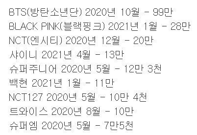 방탄 블랙핑크 엔시티(단체) 샤이니