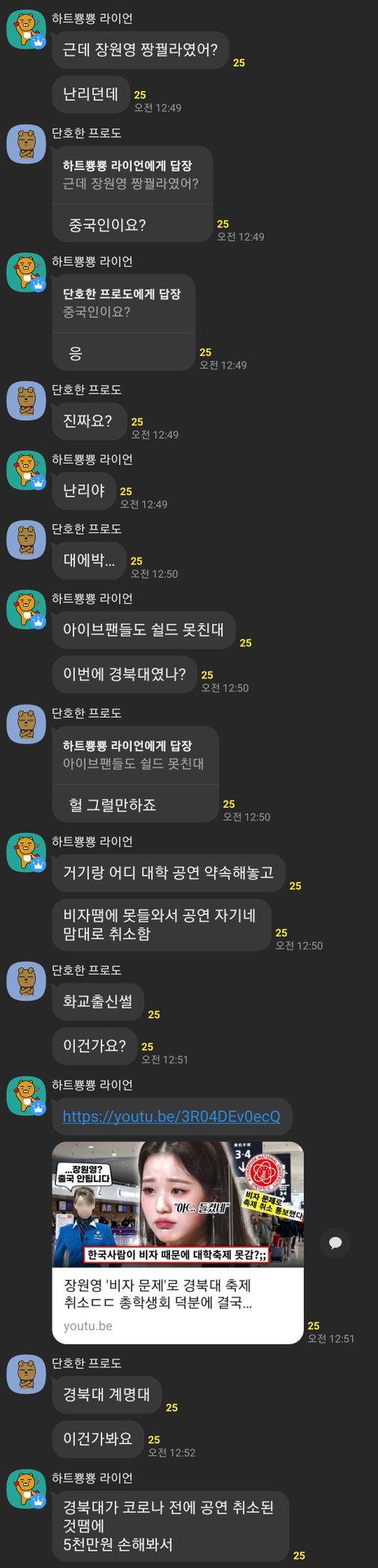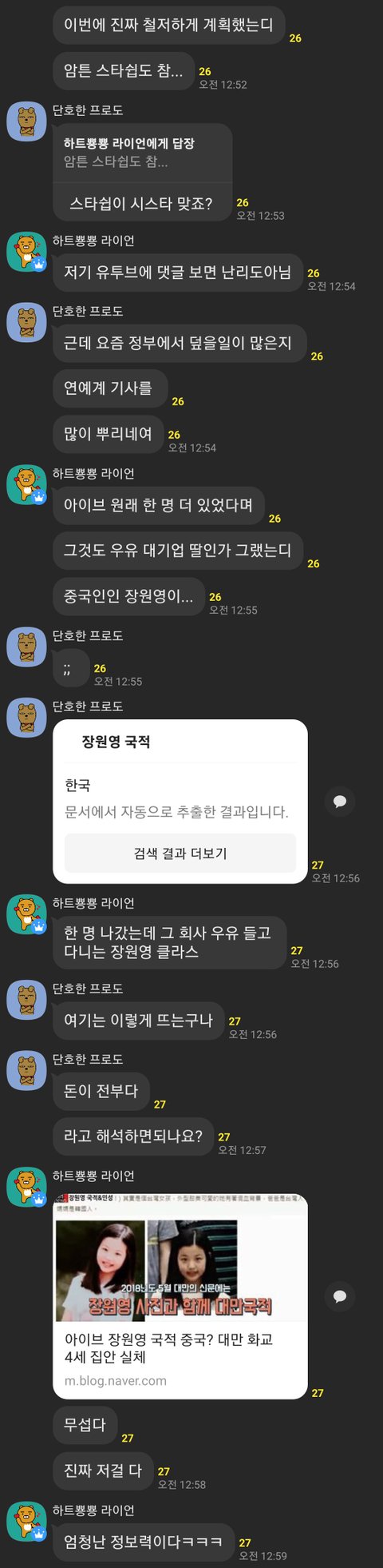 축제 건도 에이전시 잘못인걸로 에이전시쪽이 얘기나왔고 장원영 할아버지쪽이 화교인건 프듀때부터 유명했는데 이걸 이제 이렇게...