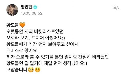 10년 넘게 황민현의 버킷리스트 1순위 였던