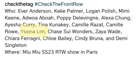 왼쪽부터 모델 아이린님, 배우 Camille Razat, 장원영, 태국 래퍼 milli 근데 위에 프런트로 리스트에는 Camille Razat 이름만 있고 양 옆 모델과 래퍼분들도 빠져있음