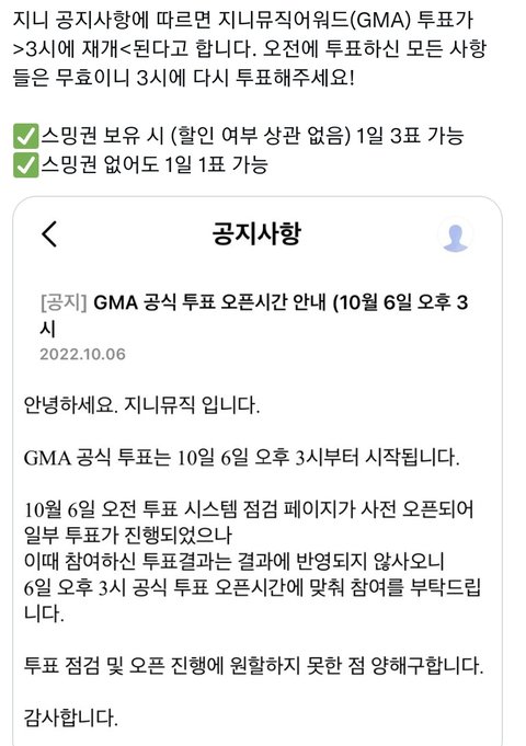 ‼️지니 오늘 3시 이전 투표 무효‼️