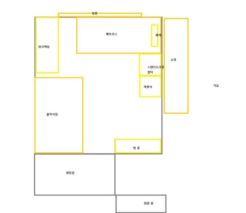 방에 뭐가 엄청 많다 . 그리고 다리밑이랑 머리쪽에 무슨 돌을 그렇게 놔뒀냐고