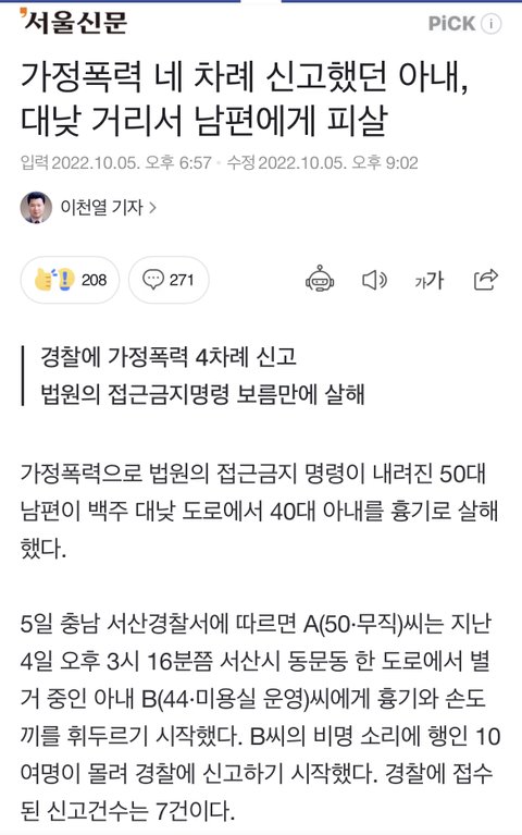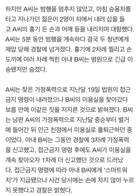 여자 못 죽여 안달이네 그냥 폭력성 보일 때 아내가 선수쳐서 남편 죽였어야했다 당하는 것보다 가하는게 낫지