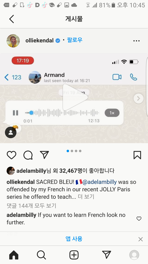 (원본은 올리 인스타에도 있고 아르망 비디오 올리는 카테고리에도 있어)