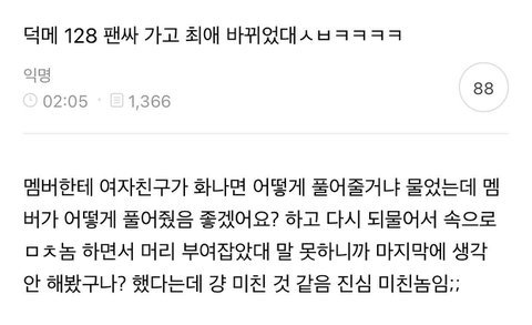 루키즈때부터 사생 ㅈㄴ 심해도 팬한테 한번도 그걸로 감쓰통 쓴적 없고 징징댄적 없는 멤인데 궁예질억까만 오지게 당한거 ㅈㄴ 웃김 ㅠㅠ