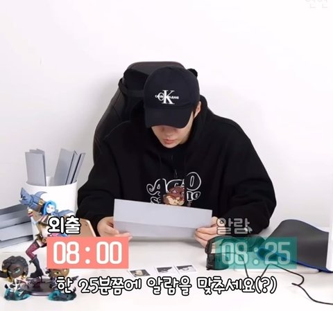 그럼 한 8시 25분쯤에 알람을 맞추세요