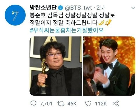 핵인싸답게 봉준호 감독에게도 축하인사 올리고