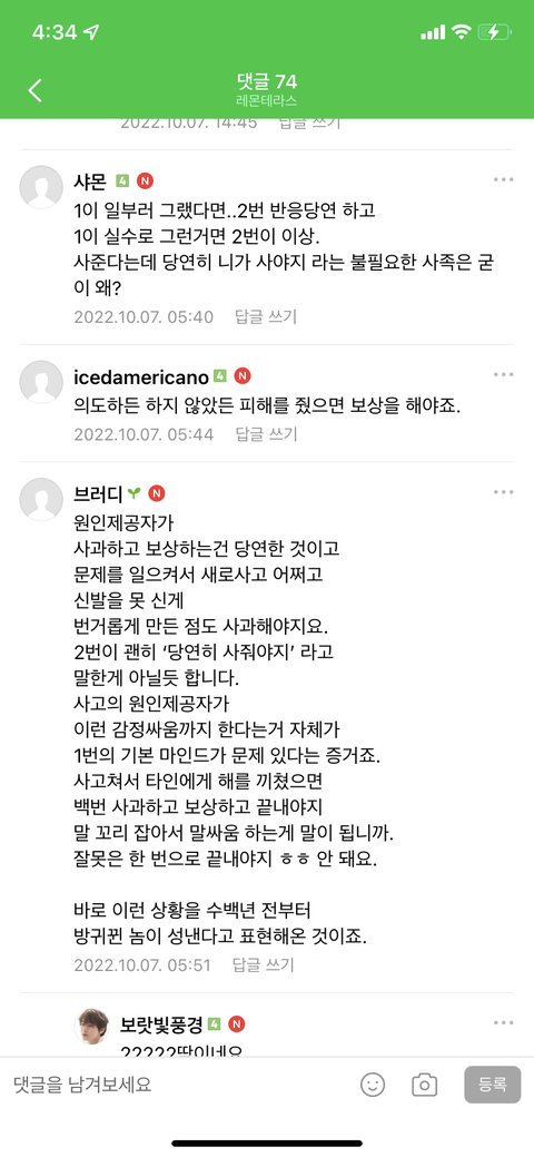 2는 너가 잘못한 일인데 기분이 어떻게 나쁠 수 있냐고 합니다