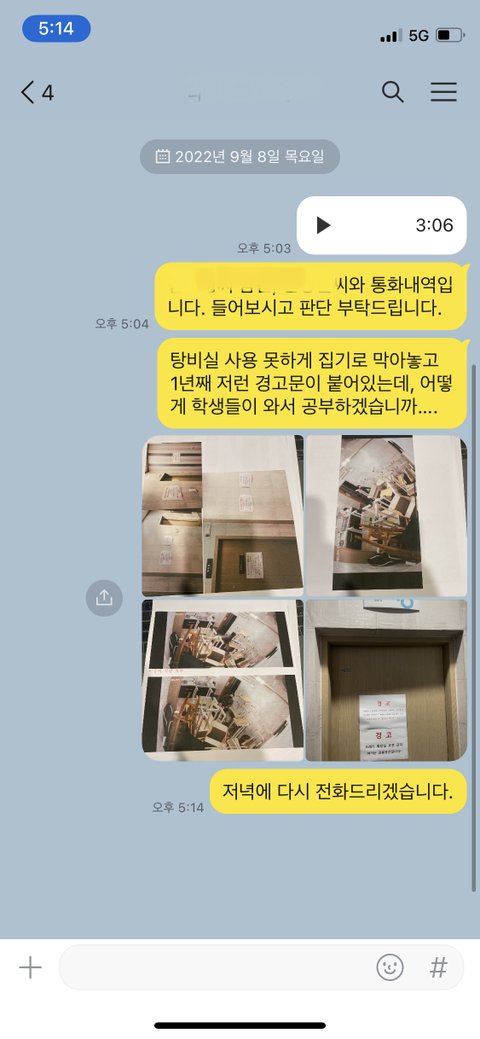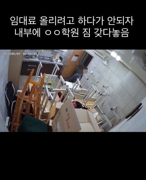저희가 임대한 면적이니 그렇게 하지 않겠다고 하니 자기네 학원 책상이랑 의자를 다 쌓아놓고,