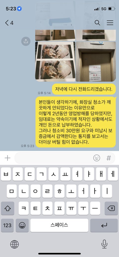 30만원을 요구하더니, 보증금에서 차감한다고 통보했네요 ㅋㅋㅋ