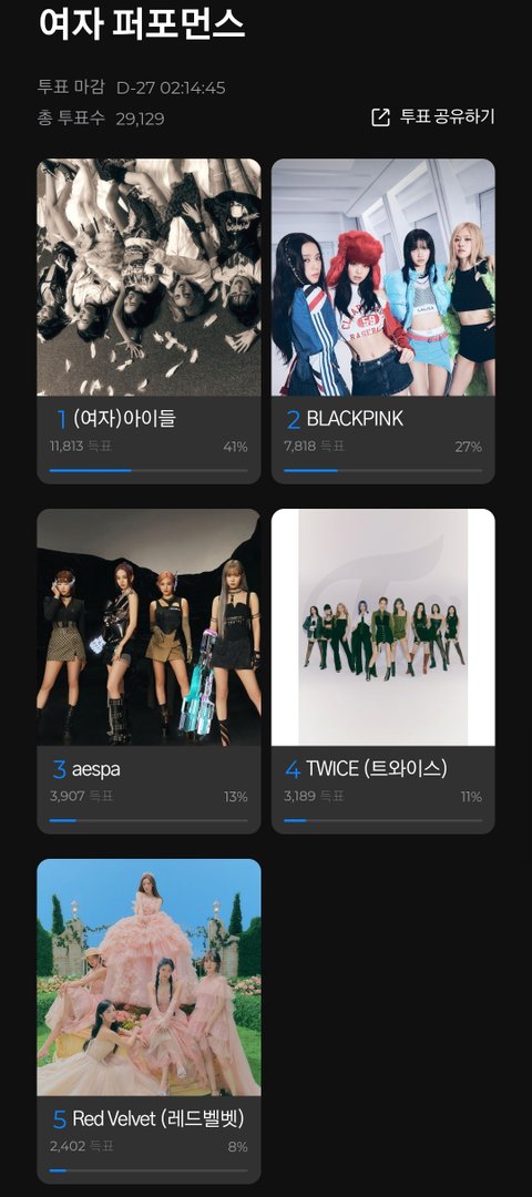 남자 퍼포먼스 후보들은 다 이해가고 여자 퍼포 후보들도 다 이해가는데 왜 아이브가 퍼포먼스 후보에 있다가 빠지는거임? 아이브 춤 커버도 많던데? 대체 무슨 기준임?