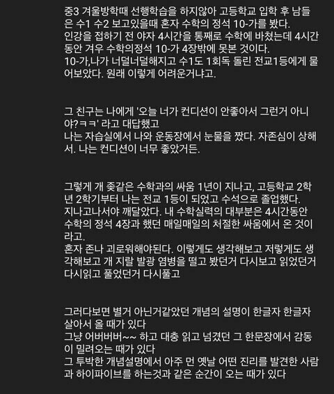 난 수시 6개 다 떨어짐ㅎ 근데 이건 뭐… 어차피 내가 추합 노리고 전체적으로 상향으로 쓴 거라 ㄱㅊ았음 예상대로 6지망 교과랑 예상 못했던 3지망?? 학종 일케 두 개 1차 추합하고 1지망 추합 기다리는데 계속 불합인 거야… 심지어 노예비였음 나ㅋㅋㅜㅜ 그래서 크리스마스에 친구랑 놀면서도 계속 추합 확인하고 추합 안돼서 몰래 슬퍼하고… 크리스마스날 잠들기 전에 다른 거 다 필요없어니까 제발 1지망 붙게 해달라고 반쯤 빌면서 잠들었는데 26일인가 27일날 전화 추합함ㅎ 전화 받고 진심 엉엉 울면서 엄마랑 통화하고 담임쌤한테 연락 드렸어ㅎㅎ 진짜 내 인생에서 제일 짜릿했던 경험인 듯