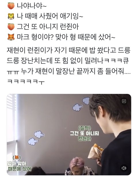 ㅋㅋㅋㅋㅋ더 친해진건가? 재현이 웃으면서 장난치는 거 넘귀엽다