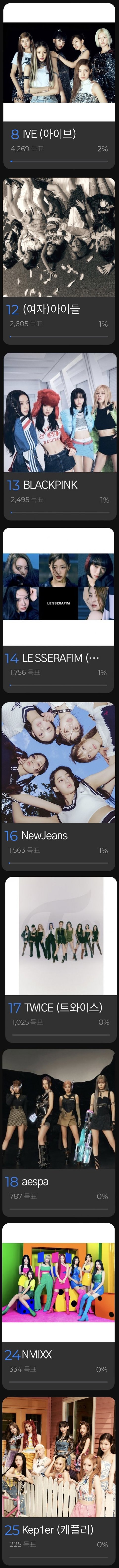아이브, (여자)아이들, 아이들, 블랙핑크, 블핑, 르세라핌, 뉴진스, 트와이스, 에스파, 레드벨벳, 레벨, 엔믹스, 케플러, 장원영, 안유진, 제니, 지수, 사쿠라, 김채원, 카리나, 윈터, 아이린, 지니, 지니뮤직어워드, GMA