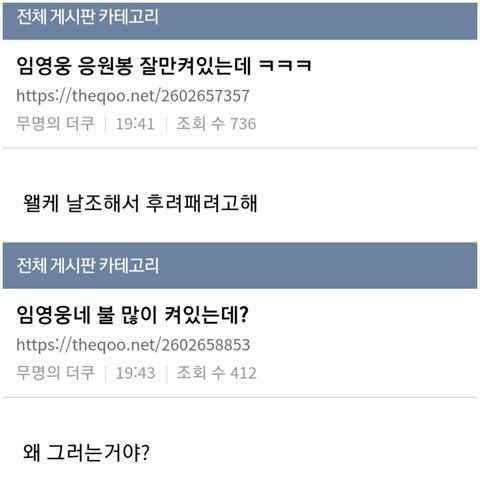 임영웅팬덤이 텐미닛한다고 날조하는 것들 그만해라