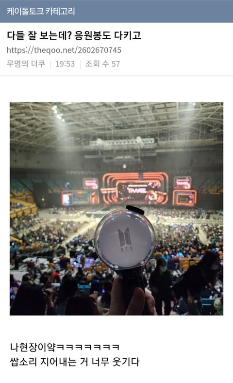 실시간 중계영상 봐도 영시들 다 호응 잘만함 정병쳐먹은 팬덤 대체 누군데?ㅋ