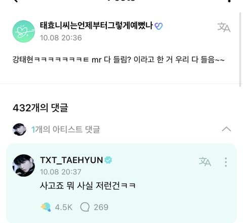 무대 들어가기 전 방송사고로 애들 말하는거 나왔는데 거기에서 강태현이 mr 다 들림? 하는거 나옴ㅋㅋㅋㅋ
