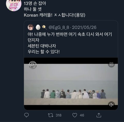 이거 멤버들 애기때 영상인데 변하지 말자면서 성공하자고 외치는 영상임 그리고 작년에 올라온 트윗이고 근데 인용수 봐봐