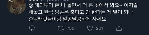 앙콘외에도 고잉 가지고 욕하고 그러다 해투때매 촬영못해서 고잉 휴식기가진다고 하니까 그걸로 욕하고 그냥 뭐가 불만이 조카게 많은건지 해외에서 살아라 돌아오지 말아라 당장 앨범 컴백 공지해라 이러고 있음 어이없는건 위에 사진처럼 이걸 멤버들한테 욕한다는 거임