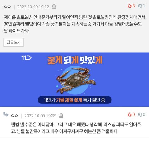 판에 하이브 직원이랑 하이브직원 ㅈㄴ 몰려오는거같지않음? 톡선댓보니까 걔네가 하이브 쉴드치면서 방탄까는거같은데