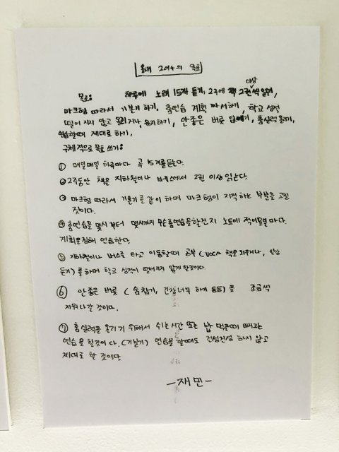 2014년 연습생 아기재민이의 목표 마크형 따라서 기본기를 같이 하고 마크형이 지적하는 부분을 고칠 것이다.