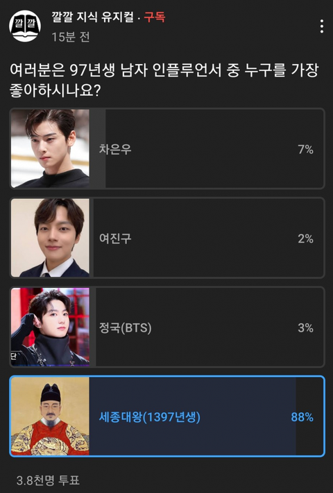 이건 저 둘 팬이어도 세종대왕 투표해야지 세종대왕 없었으면 한글로 주접떠는 거 못 했을 거잖음
