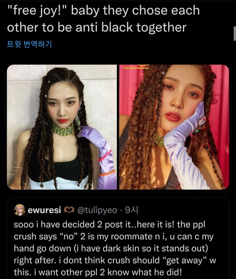 + 레드벨벳 조이가 짐살라빔때 했던 머리도 조롱이라며 끼리끼리 만났다고 욕 먹는 중