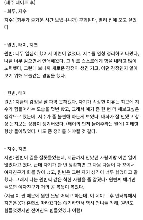 시즌1만 봐도 x끼리 있는 시간에는 과거 얘기하고 타출한테 고민상담도 하고 그러던데 왜 유독 원빈이한테만 과거 얘기하지 말라고 엄격한 잣대를 들이미는지 모르겠네;;;