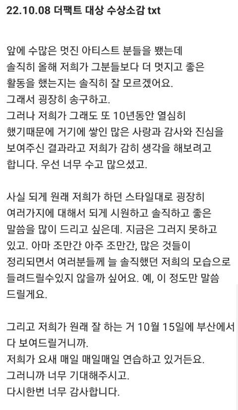 처음으로 회사 언급이랑 방피디님 언급을 안 했음