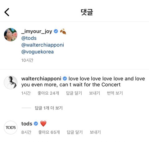조이 인스타에 토즈 디자이너가 댓글 달었어…