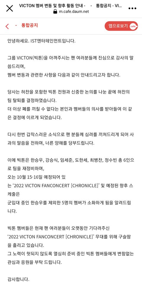 빅톤 허찬 탈퇴한데