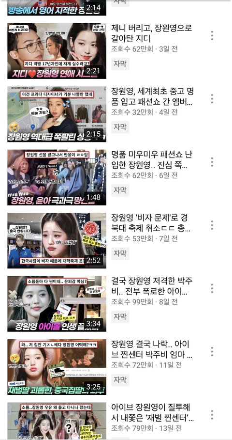 며칠 동안 ㅈㅇㅇ 영상만 몇 개를 올리는 거임?