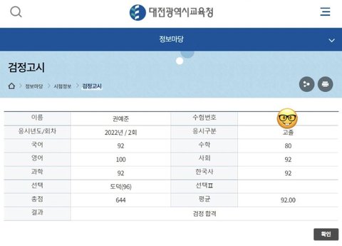 + 검정고시는 평균 60점 넘으면 합격이고 총 7과목 시험봐야함.