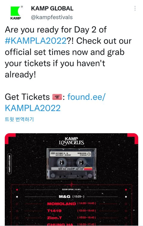 KAMPLA2022 공연 시간