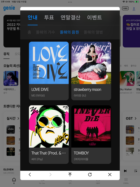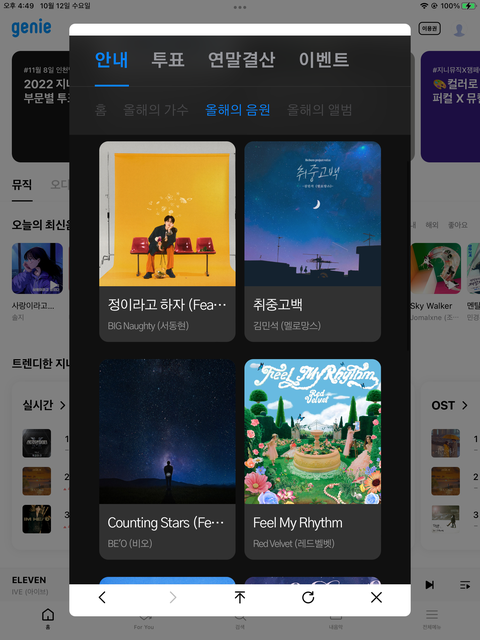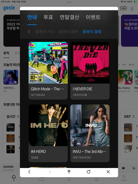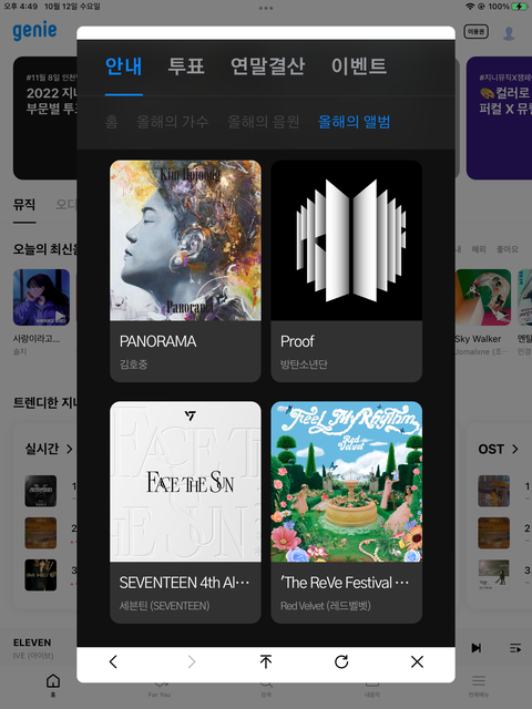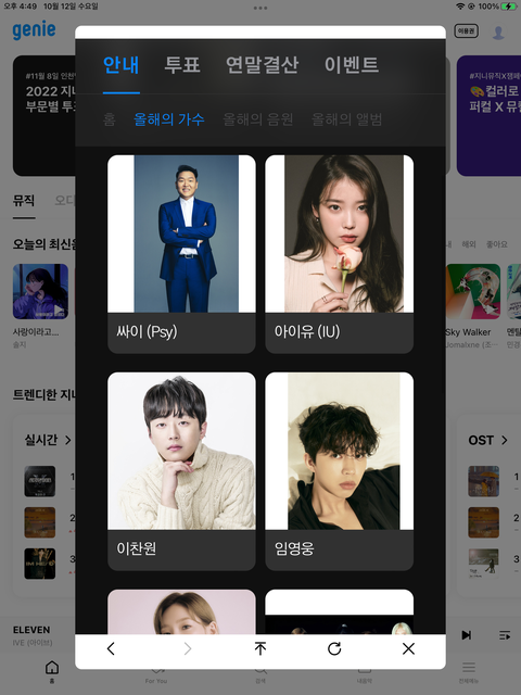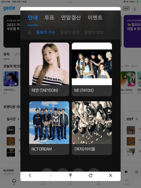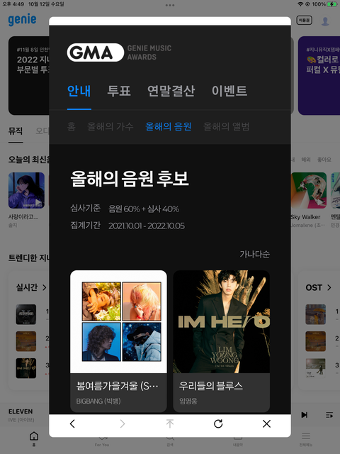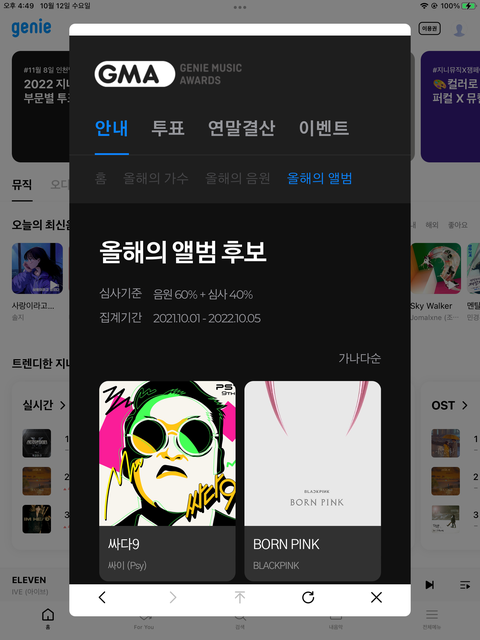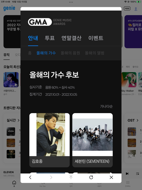 올해의 가수에서 방탄 후보에서 제외됨 방탄, 엔씨티, 엔드림, 태연, 싸이, 아이브, 아이유, 아이들, 세븐틴, 에스파, 트와이스, 있지, 스키즈, 투바투, 빅뱅