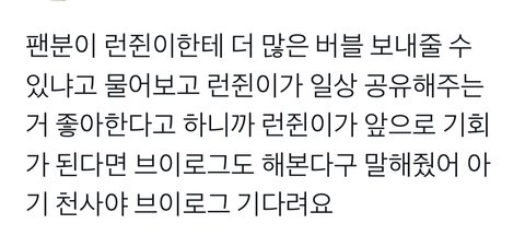 브이로그 생각했었나봐!! 대박ㅠㅠ 나 런쥔이 릴캠 좋아하는데... 소소한 일상이라도 런쥔이만의 감성때문에 재밌을 거 같아