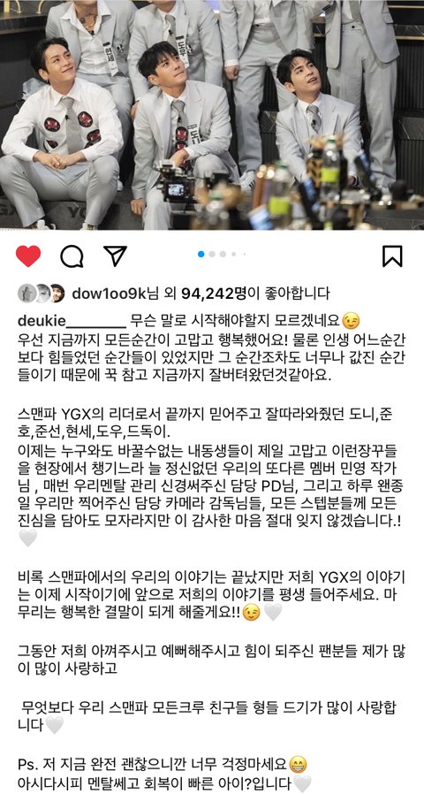 스맨파 ygx 드기 인스타 순딩 그 자체