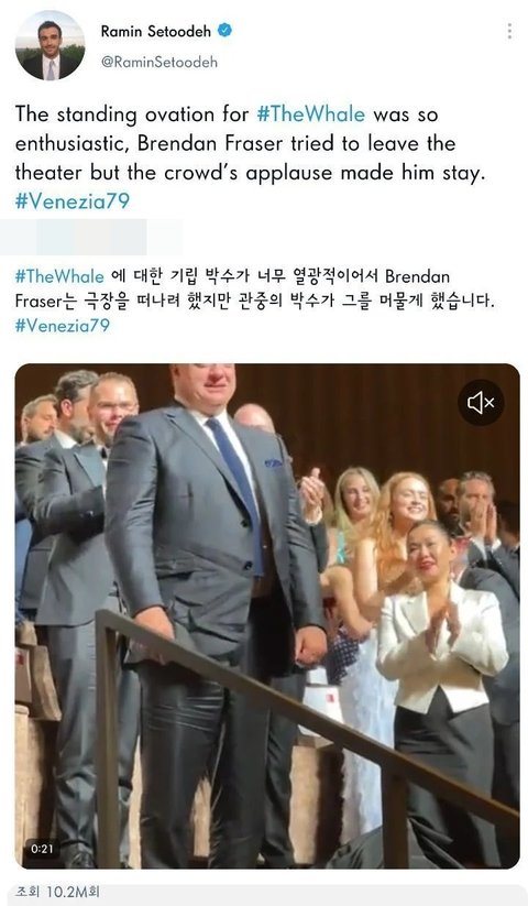 영화 상영 끝나고 기립박수 받는 모습이 벌써 조회수 1000만 가까이 찍힘
