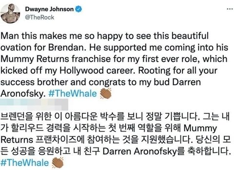 배우 '더 락'의 칭찬과 응원 트윗