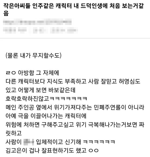 처음보는 유형의 주인공 캐릭터라는 반응 꽤 있을만큼