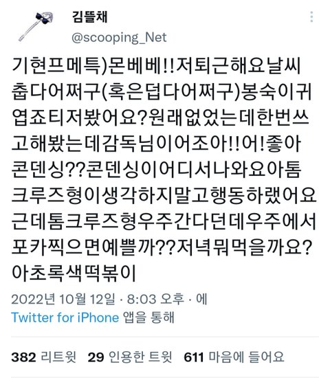 이 게시물 안에 대화주제가 총 4번 바뀜...