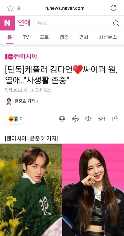 아니.. 이거 왜 인정함? 다른 멤버들 보기 안미안함? 여돌에게 연애보다 더 중요한게 팬들과 동료들 아님? 어이가 없네