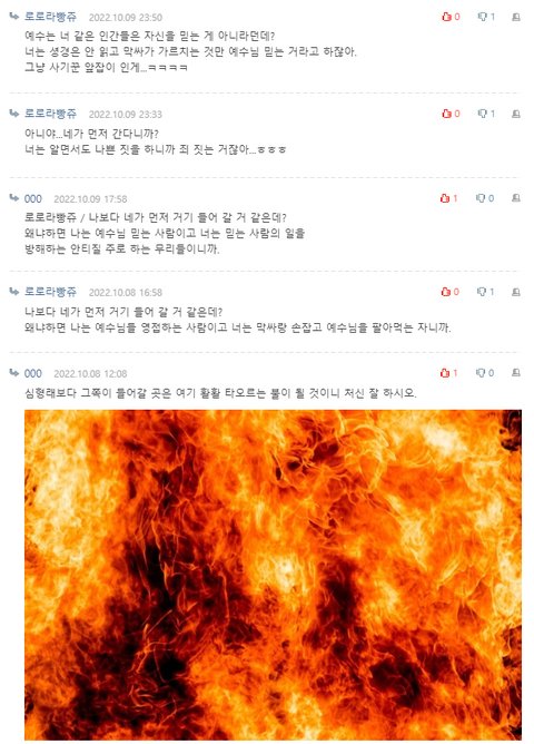 이런 인간이 온라인이 아니라 오프라인에서 활개친다면 불지옥이 아니라 정말 불을 붙이고 야구방망이로 사람들을 치겠지.