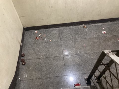 어떤애가 생일이었는지 계단실에 아주 범벅을 해둠 다 먹을것도 아니면은 대체 왜 저러는걸까 계단실이 넓어서 사진상으로는 별로 안 심해보이는데 ㄹㅇ 여기저기 범벅임;